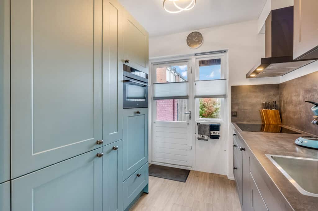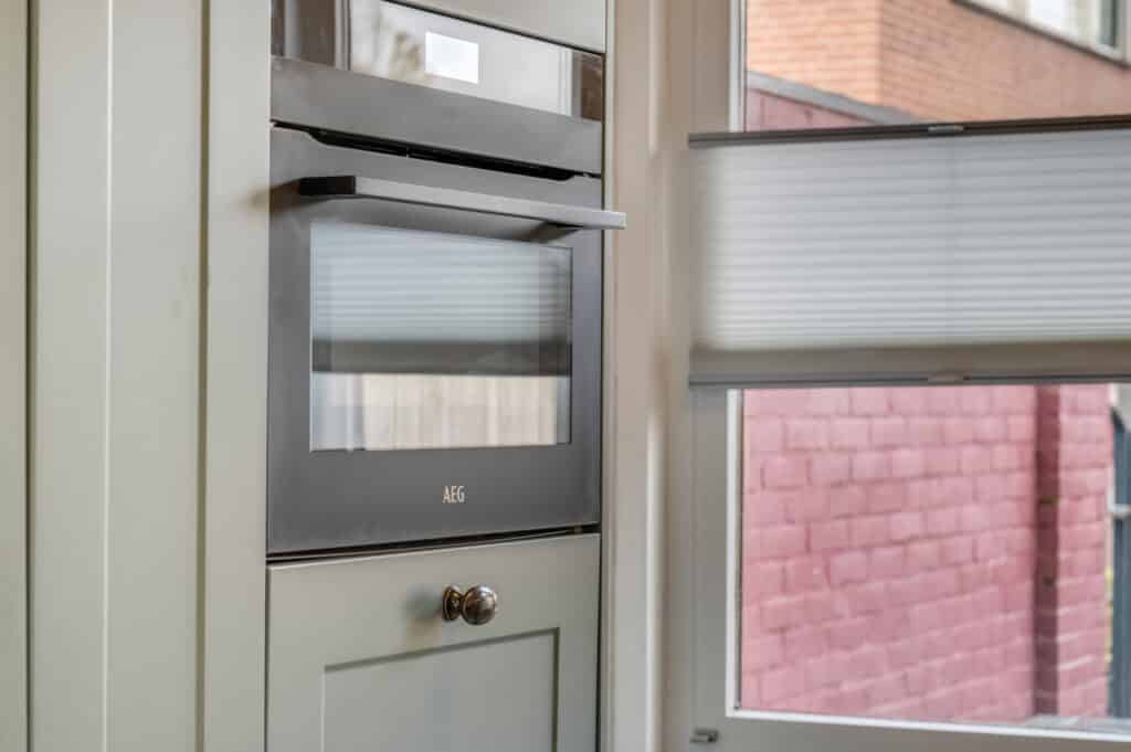 U rijdt het pittoreske Andelst binnen en ervaart direct de rust en cultuur van dit Betuwse dorp. U staat voor de woning en ziet direct dat u een sfeervolle woning binnen stapt. Bij binnenkomst van deze statige woning is er een ruime entree met trapopgang, meterkast, modern toilet en toegang tot de aangebouwde garage. De aan de voorzijde gelegen doorzon woonkamer geeft een oase van rust door de vele raampartijen en warme kleuren. De kurken vloer met generfd hoogglans in combinatie met de strakke wanden en plafonds zorgen hier voor de kwalitatieve afwerking. De woonkamer is op een prettige manier verbonden met de keuken. Gescheiden door de eettafel is de open keuken door een rechte opstelling aan weerszijden gerealiseerd. Verder is de keuken voorzien van de nodige inbouwapparatuur als een 5-pits gaskookplaat met afzuiging, een vaatwasser (Bauknecht), ingebouwde combi-oven (Bauknecht), koel/vriescombinatie en dubbele spoelbak. Afgewerkt met een granieten blad met waterkering en voldoende kast- en bergruimte.
