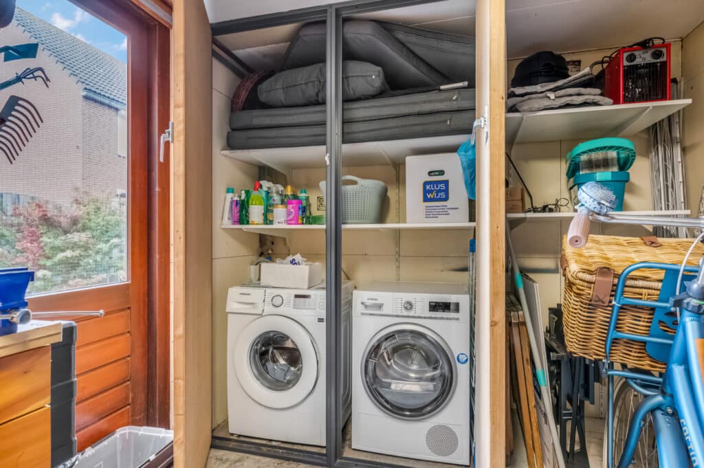 De aangebouwde garage van 6,32 m x 2,65 m is geschikt voor een auto en voorzien van een elektrische roldeur. Hier vindt u ook de wasmachine- en drogeraansluiting. De garage biedt de ideale plek voor uw opslag, fietsen maar uiteraard ook voor het uitoefenen van uw hobby. De tuin is bereikbaar via de garage.