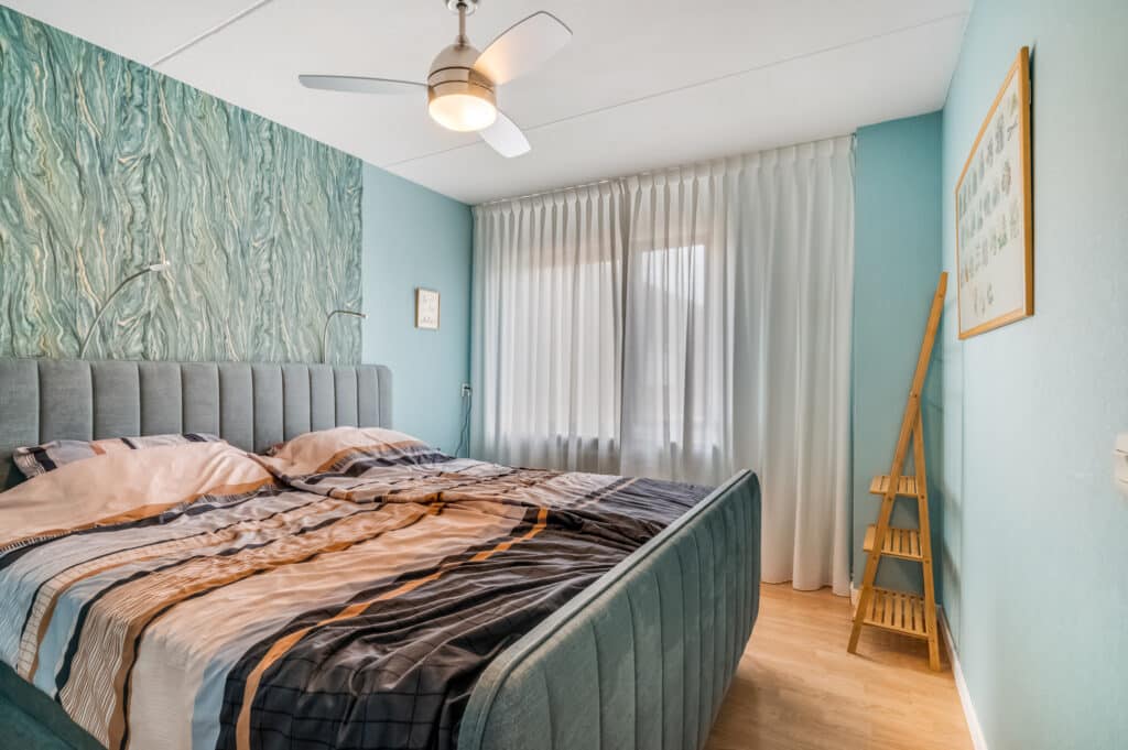 De master bedroom is aan de achterzijde van de woning gelegen en biedt u een comfortabele nachtrust. Het betreft de grootste slaapkamer met een mooi hoek voor (inbouw)kast. De overige slaapkamers liggen aan de voorzijde van de woning en zijn met afmetingen van circa 10 en 8 m² groot genoeg voor een bed met (kleding)kast.