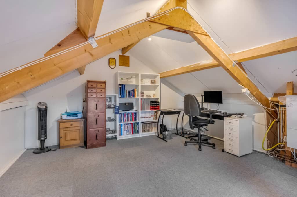 De multifunctionele ruimte op de tweede verdieping is momenteel in gebruik als open ruimte met ruimte voor de cv installatie (Daalderop 2007). Door het raam (met rolluik) in de zijgevel en de volledige dakisolatie is hier de mogelijkheid tot het realiseren van een voorzolder met 4e slaapkamer.