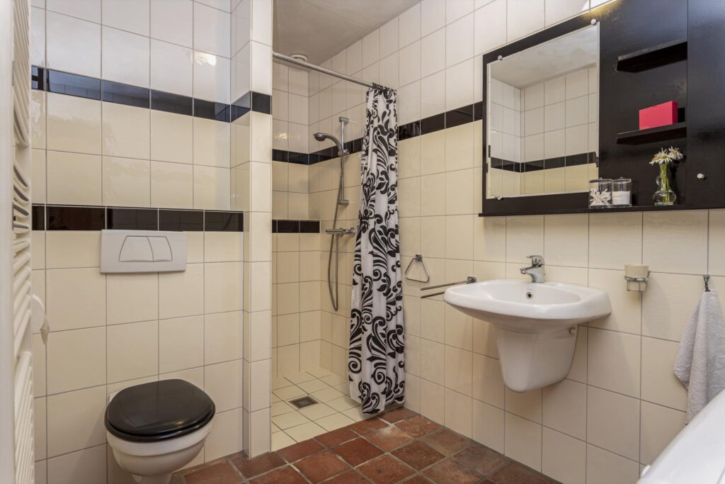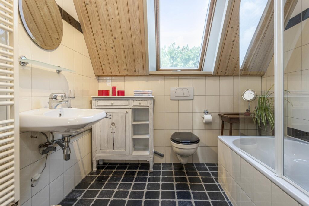 Een bijzonder kenmerk van de benedenverdieping is de authentieke plavuizen vloer met comfortabele vloerverwarming, die zorgt voor een aangename en gezellige sfeer in de gehele ruimte.