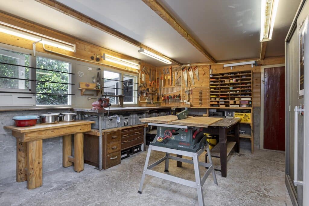 Daarnaast is er een riante berging beschikbaar, die zich uitstekend leent als een klusschuur waar creativiteit tot leven kan komen. Ook is er een ruimte waar de fietsen veilig en overdekt gestald kunnen worden, zodat ze beschermd zijn tegen weer en wind.