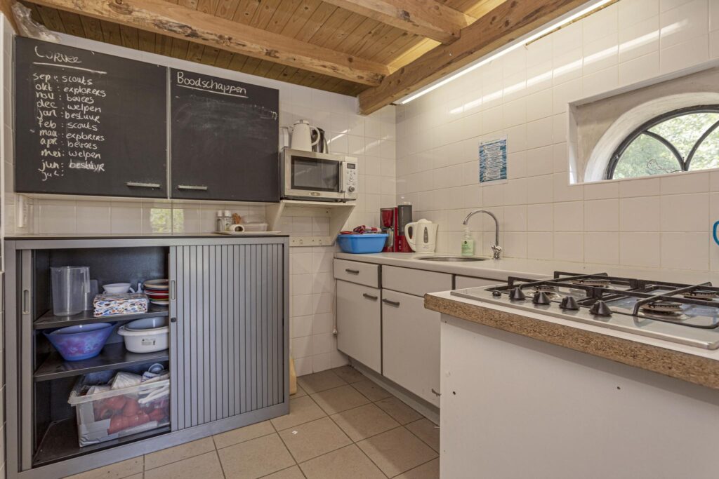 Vanuit de woonkamer heeft u directe toegang tot de fraai aangelegde achtertuin en de open leefkeuken. De keuken is van alle gemakken voorzien, inclusief een koelkast, oven, vaatwasmachine en afzuigkap. Het aanrechtblad is gemaakt van prachtig Belgisch hardsteen, wat de keuken een luxe uitstraling geeft. Daarnaast beschikt de keuken over een ruime opbergkast, zodat al uw kookbenodigdheden netjes kunnen worden opgeborgen.