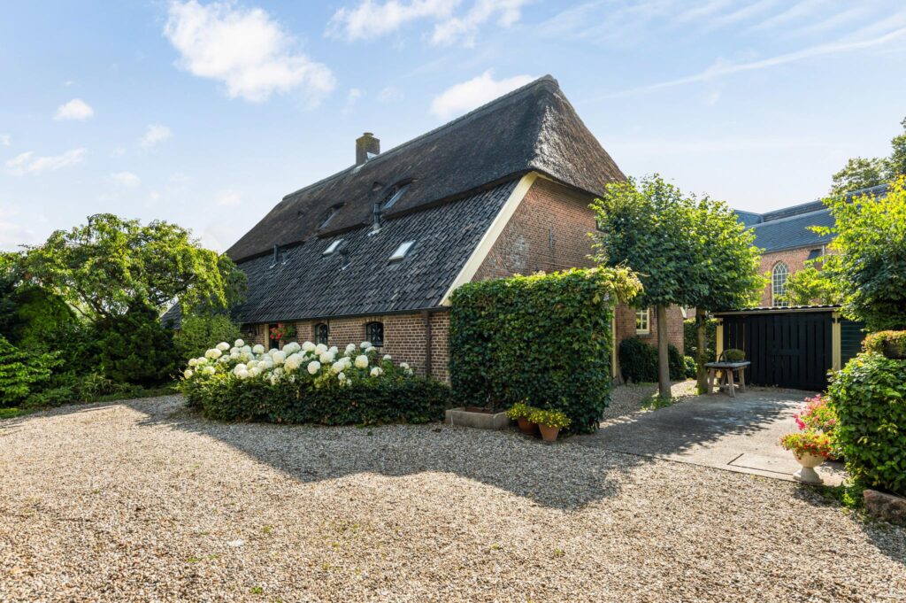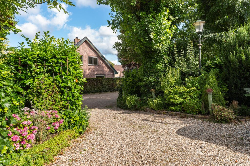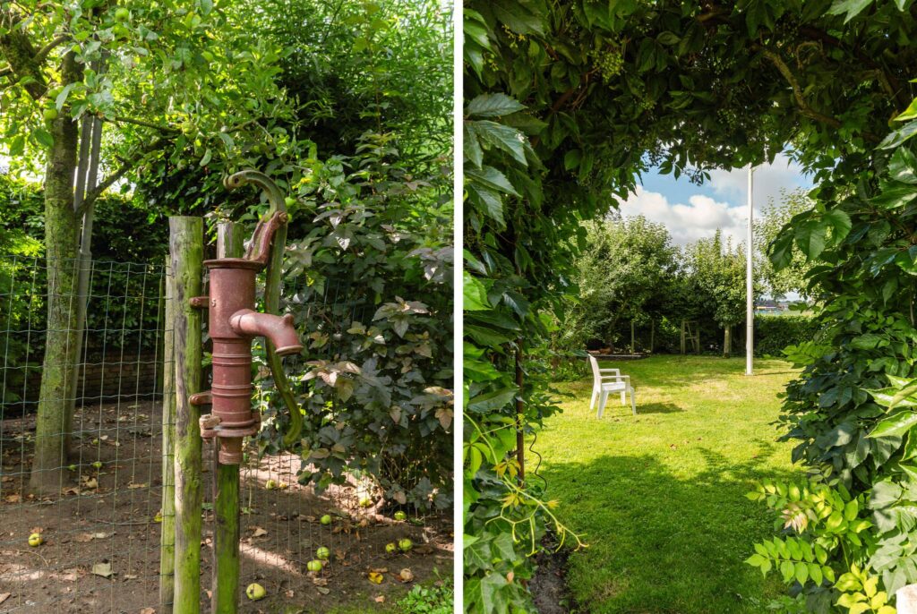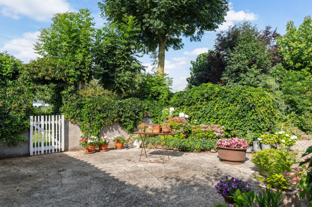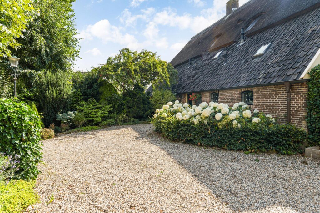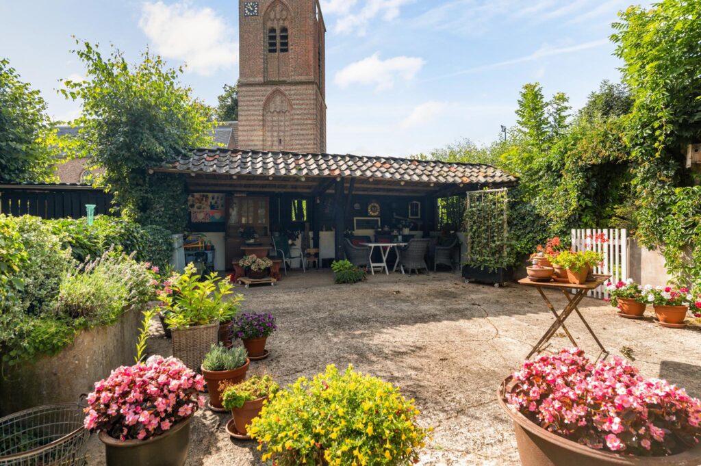 Rondom de betoverende woonboerderij is een prachtige tuin aangelegd, met oog voor detail en verzorging. Hier heerst een serene sfeer van rust, ruimte en absolute privacy. Zodra je de woning uit stapt, tref je een deels overkapt, royaal terras aan dat als een uitnodiging dient om te ontspannen en te genieten van het buitenleven. De buitenruimte biedt ruimschoots plek voor het creëren van een weelderige moestuin en is een waar paradijs voor huisdieren en kleine boerderijdieren. Een ideale plek waar ze vrij kunnen ronddartelen.
