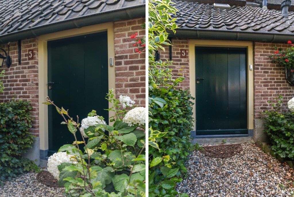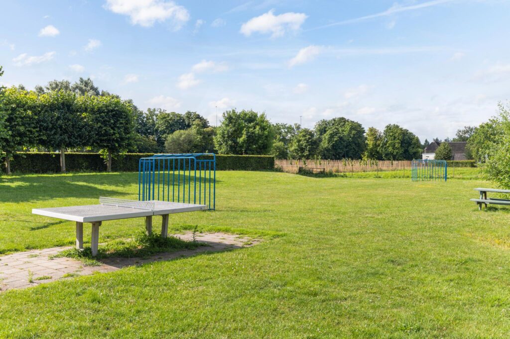 Ook Schoolstraat 5A is omringd door het groen. Hier is een groot grasveld en een beukenhaag aan de straatzijde. Direct achter de woning ligt een mooie groene speelplaats.