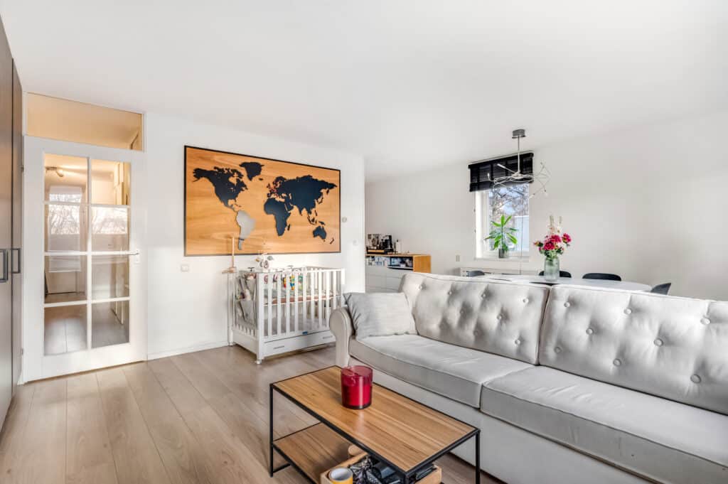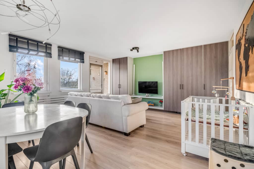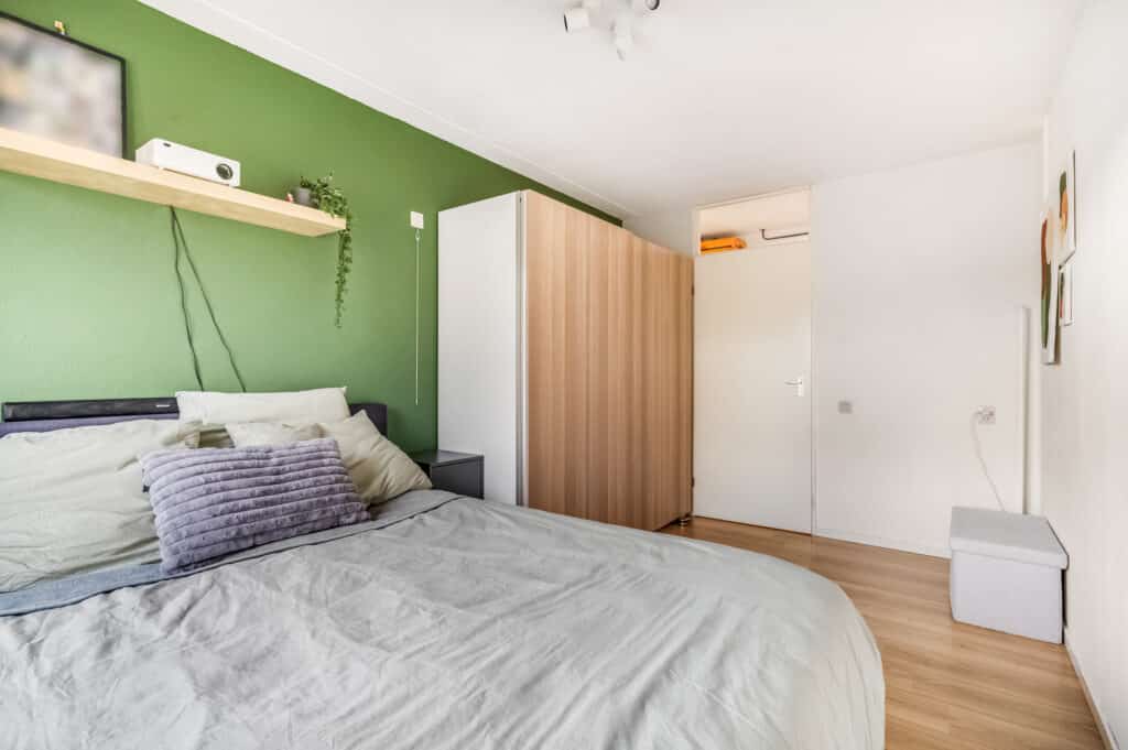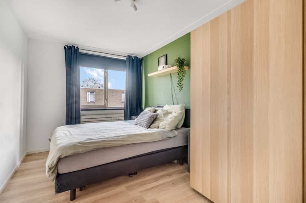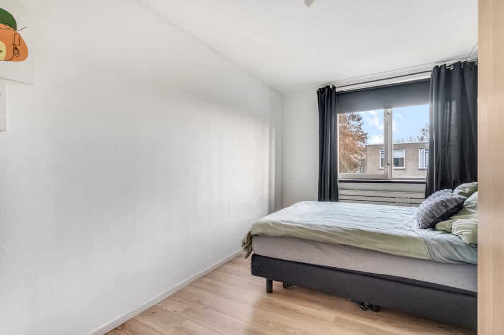 Het appartement telt twee verrassend ruime slaapkamers. De hoofdslaapkamer biedt voldoende ruimte voor een groot bed en kastruimte, terwijl de tweede kamer perfect is als werkplek, logeerkamer of hobbyruimte. Dankzij de hoekligging en grote raampartijen profiteer je in beide kamers van een prettige lichtinval.