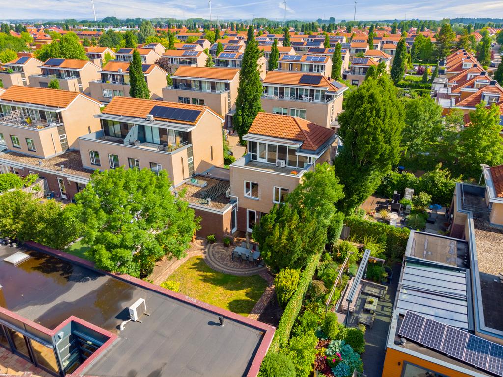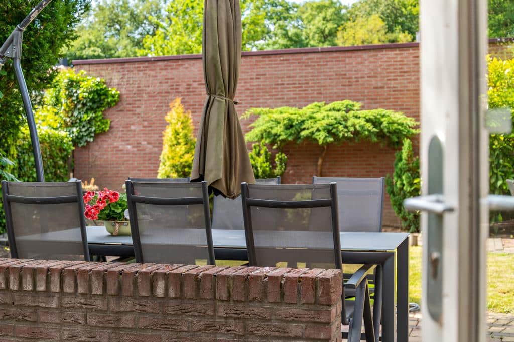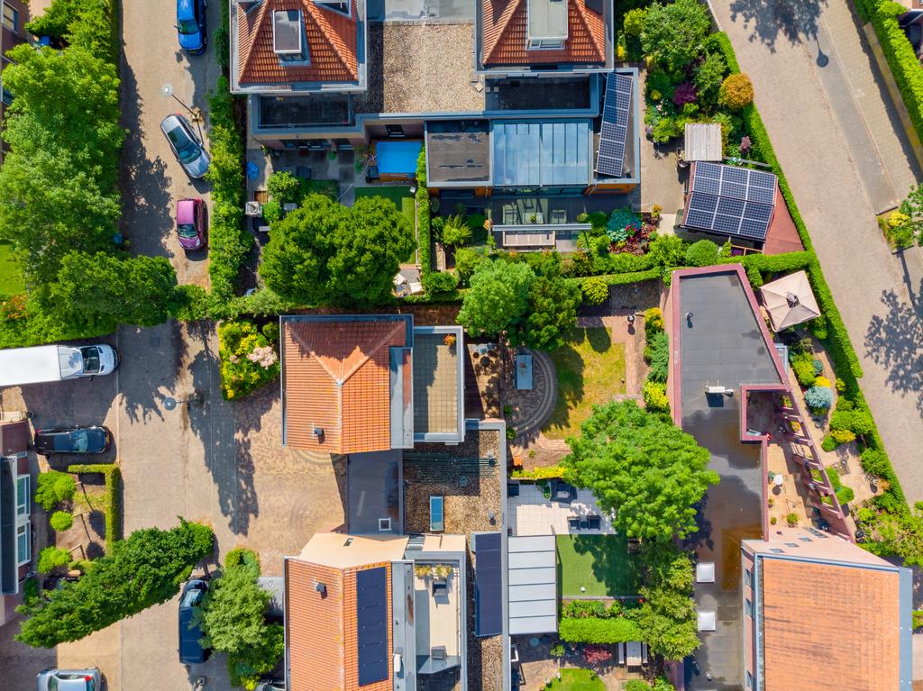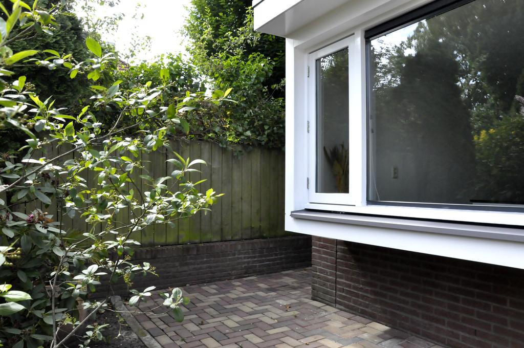 De riante achtertuin heeft, net als de woning, een goed onderhouden uitstraling. Een speelse tuin met verschillende terrassen, groenrijke borders, gazon, bomen en struiken, toegang tot de praktijkruimte en ideale achterom. Het terras is direct aan de woning, over de volledige breedte, gerealiseerd. Hier is voldoende ruimte om een heerlijke eettafel neer te zetten. Via de openslaande deur loop je zo deze zonnige tuin in die het woongenot compleet maakt. Verder zijn er meerdere mogelijkheden voor een extra terras en/of loungehoek waardoor u altijd de gelegenheid heeft om voor schaduw of zon te kiezen.