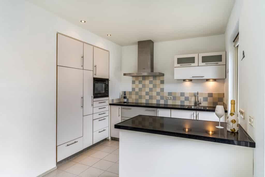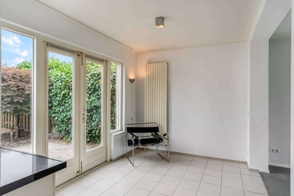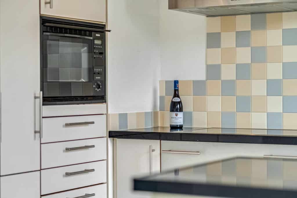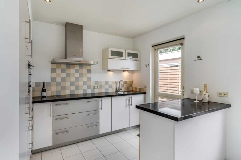 De keuken is gelegen aan de tuinzijde, in de uitbouw, en heeft een prettige, open indeling met een ruim werkblad, een aparte eilandopstelling met kastwerk en een Siemens vaatwasser. Daarnaast beschik je over een Bosch combi-oven, een inbouwkoelkast, een elektrische kookplaat met afzuigkap, en een moderne spoelbak. De keuken is uitgevoerd in een tijdloze witte kleurstelling met een stijlvol donker werkblad en er is voldoende ruimte voor een grote eettafel. De openslaande deuren zorgen voor een fijne verbinding met de tuin! De uitbouw is voorzien van vloerverwarming.