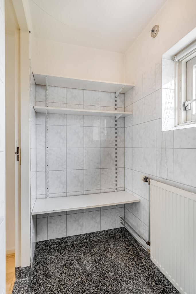 Op de eerste verdieping kom je via de gestoffeerde trap op een overloop met laminaatvloeren die doorlopen in de slaapkamers. Er zijn twee grote slaapkamers, waarvan de kamer aan de voorzijde is voorzien van een inbouwkast. Daarnaast vind je hier een aparte wasruimte, ideaal en praktisch!
