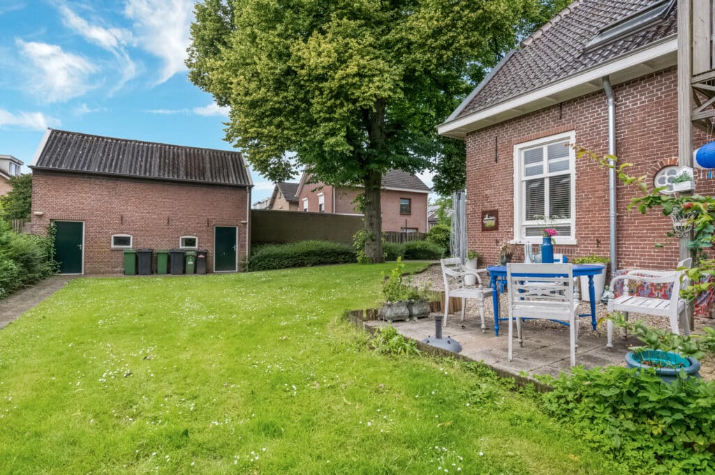 Rondom de woonboerderij ligt een sfeervolle, parkachtige tuin die een gevoel van vrijheid en rust uitstraalt. Grote bomen, groene borders en zonnige terrassen maken dit tot een ideale plek om buiten te leven.