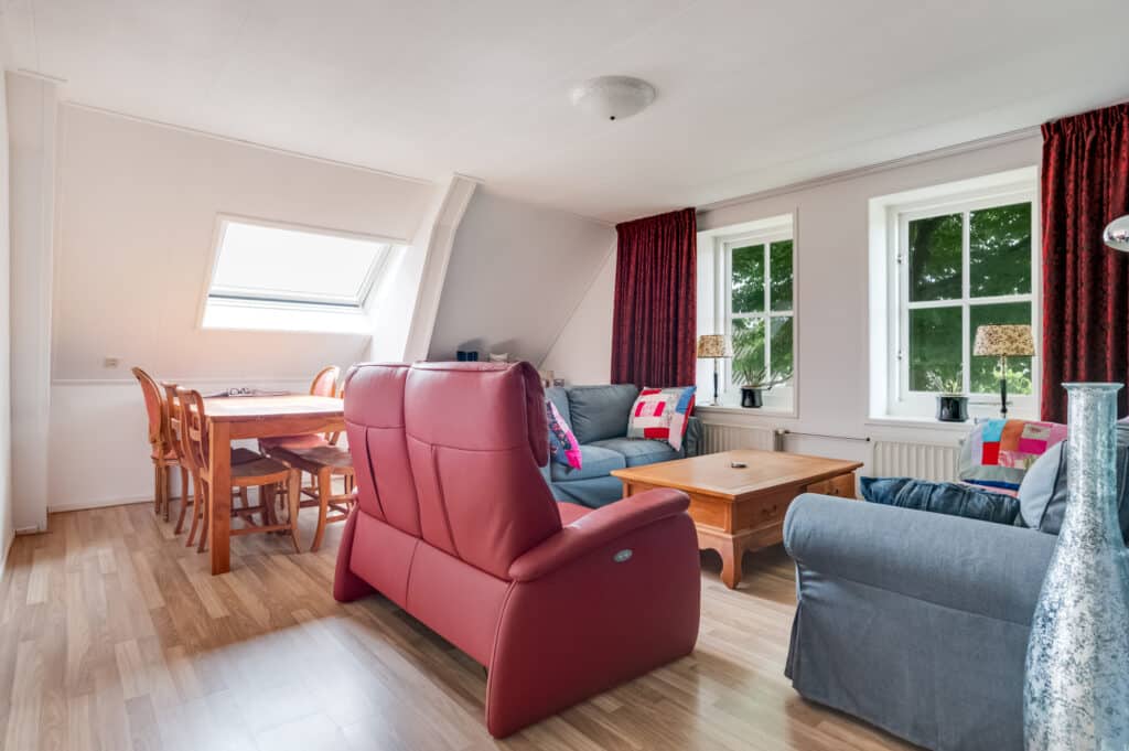Deze karaktervolle maisonnette is gelegen aan de representatieve voorzijde van de woonboerderij en combineert klassiek wonen met praktische ruimte. De woning beschikt over een ruime keuken, een licht en sfeervol woongedeelte en twee comfortabele slaapkamers. Aan de tuinzijde bevindt zich een zonnig balkon, perfect voor een kop koffie in de ochtendzon. De volwaardige zolderverdieping is ingedeeld in meerdere kamers – ideaal voor extra slaapkamers, een thuiskantoor of hobbyruimtes. Een ruim en veelzijdige maisonnette met volop mogelijkheden op een markante locatie.