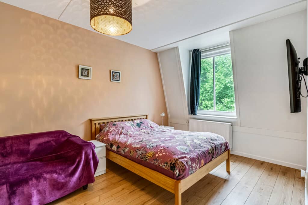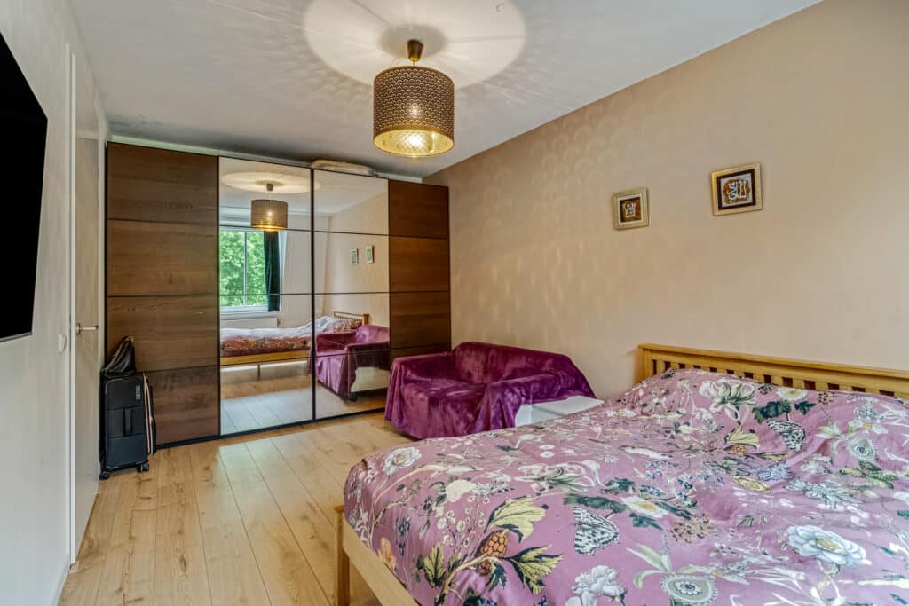 Aan de galerijzijde bevindt zich een ruime slaapkamer met voldoende plek voor een tweepersoonsbed en grote kledingkast. Aan de straatzijde de tweede, eveneens royale slaapkamer. Beide kamers zijn licht, rustig gelegen en praktisch in te richten.